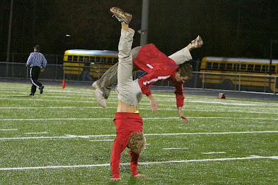 The following series of pictures are from Tom Pajewski's website (link on the sidebar). These were taken at the AHS football game Friday night, when the District Championship team was honored on the field. Ben and Rowen were having a little fun...